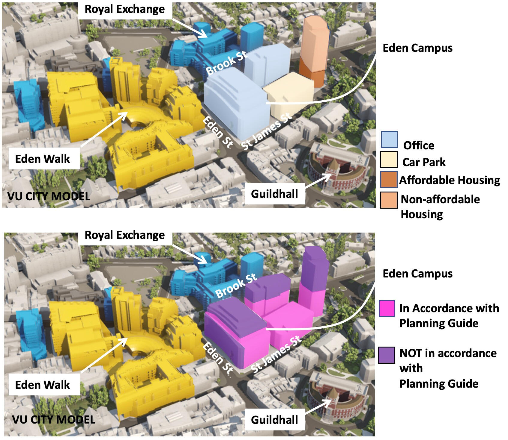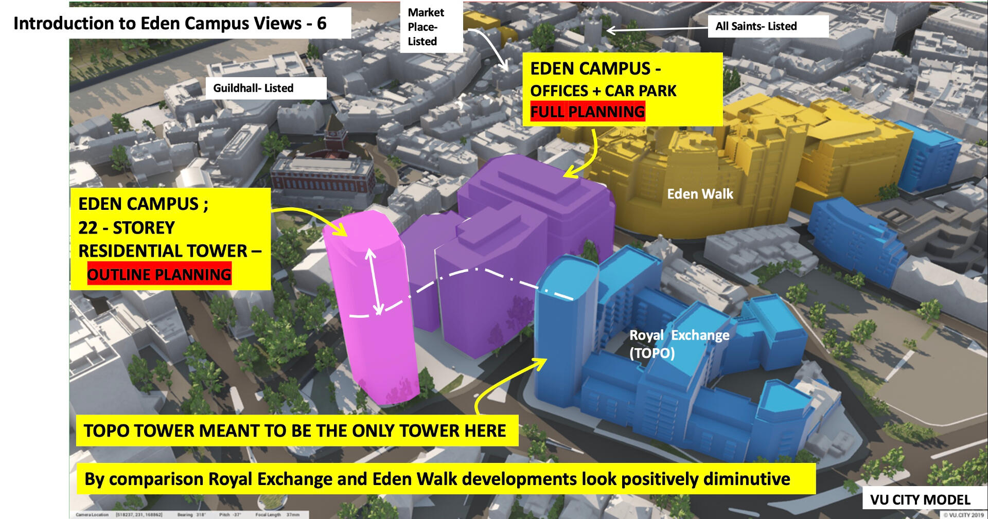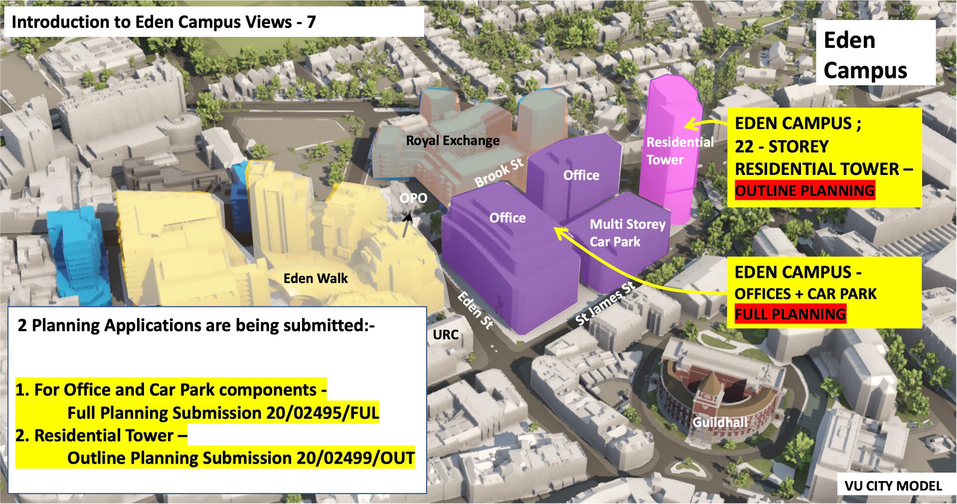 Outline planning context-The Eden Quarter Development Brief Supplementary Planning Document (‘EQDB’ ) is the Current controlling guide for development at Eden Campus, Royal Exchange ( TOPO) and Eden Walk. These are the key points:-- It is stated to be a material consideration for future planning applications
